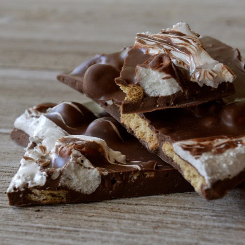 Longing for a summer's night, sitting around the campfire and feeling that light breeze through the trees while enjoying a fire roasted s'more? Cocoa Mill's has perfected that summers treat in the ooey gooey s'mores bark. Melt in your mouth milk chocolate, gooey marshmallows and graham crackers let you escape to the fire side regardless of time or place. Time travel back to summer with S'mores Bark from Cocoa Mill.
