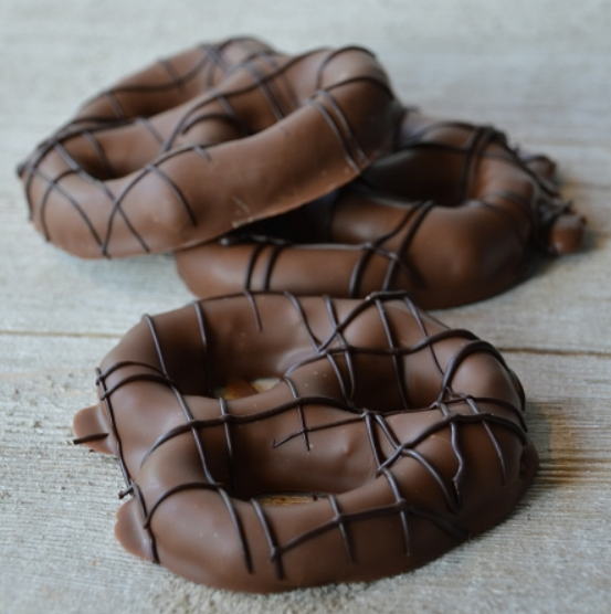 Cocoa Mill's Chocolate Pretzels & Cookies are a popular treat for young and old. Dipped in Cocoa Mill's Creamy Milk Chocolate and topped with a generous drizzle of Rich Dark Chocolate, these sweet treats will not disappoint. Your choice of Chocolate Covered Pretzels, Graham Crackers, or Oreos.